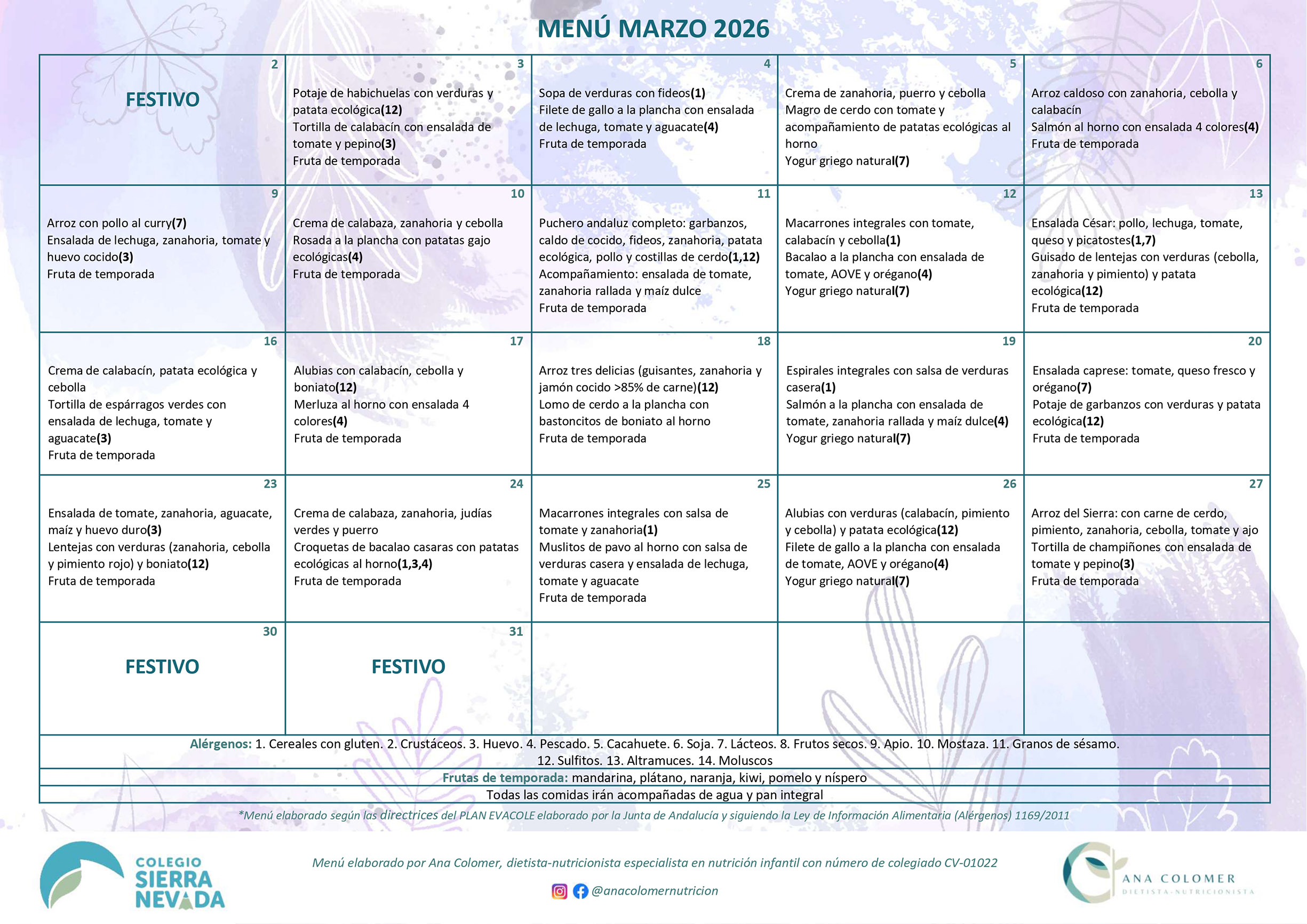 Menú Marzo