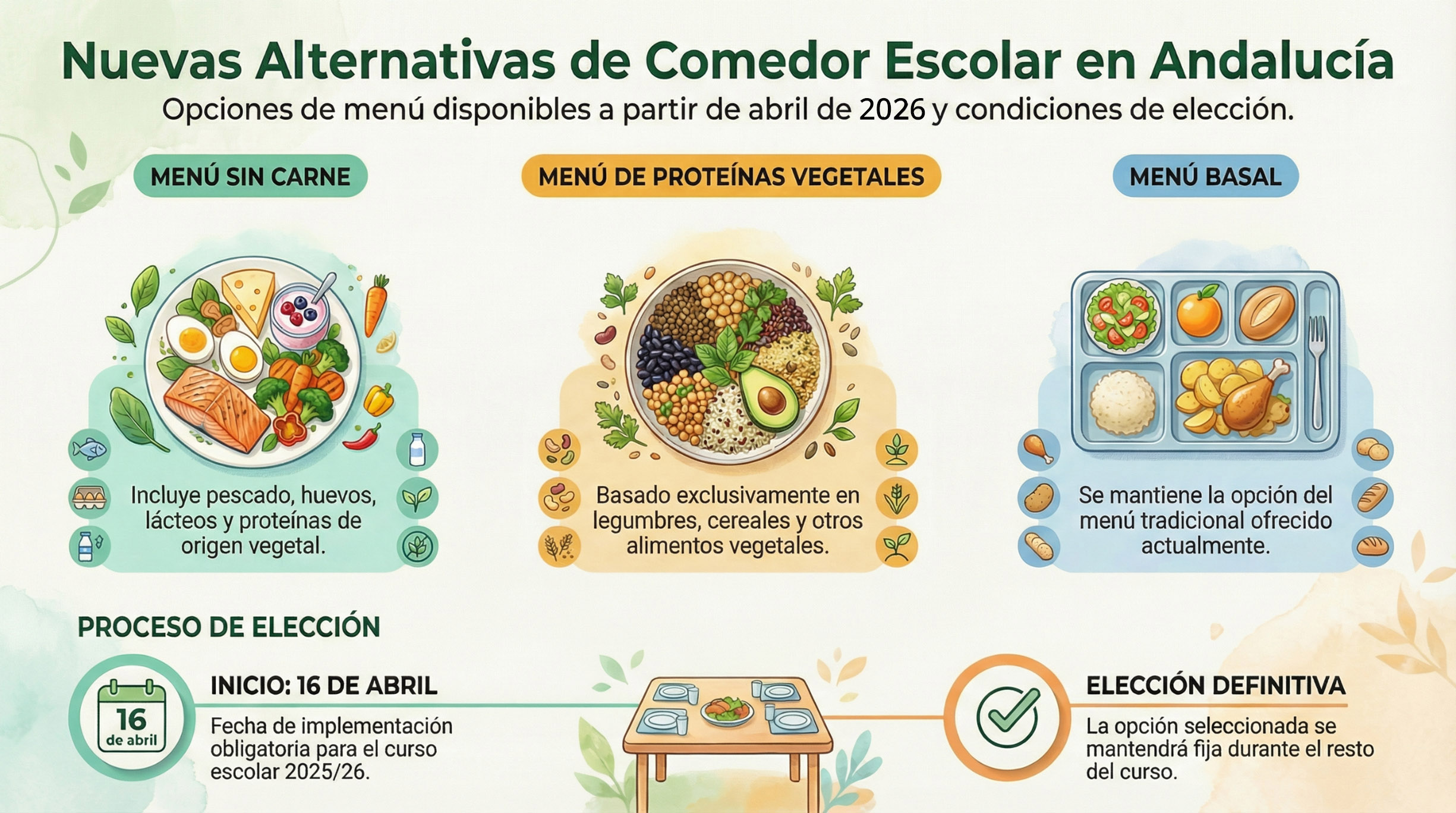 Todos los menús irán acompañados de agua y pan. La fruta será de temporada.
